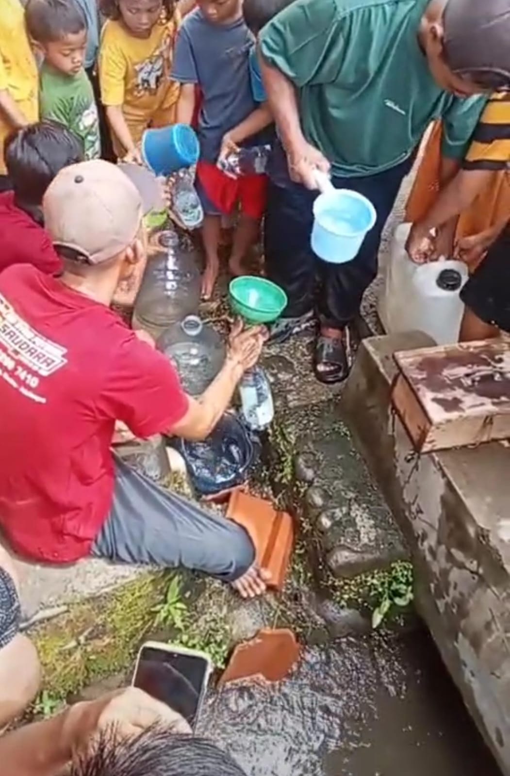 Suhanto warga sekitar memberikan keterangan “, iya warga dikejutkan dengan kemunculan sumber air yang tiba-tiba muncul dari tanah di sekitar pemukiman ,kami dan warga lainnya pun berduyun duyun untuk melihatnya dan benar apa adanya sampai warga antre untuk mengambil air tersebut.